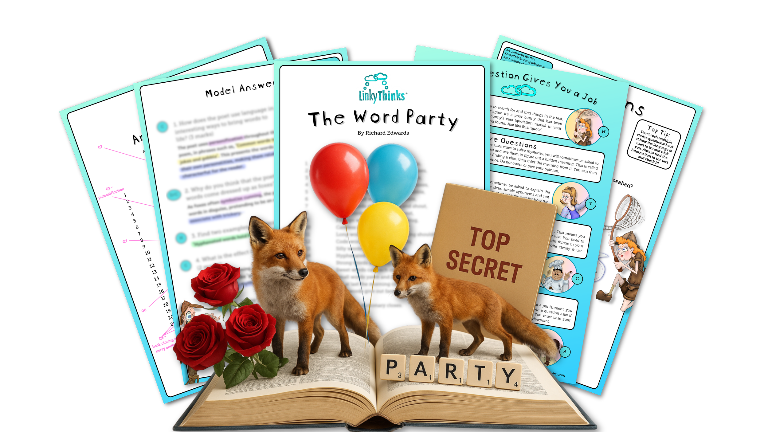 A LinkyThinks poetry comprehension resource based on Richard Edwards’ playful and imaginative poem ‘The Word Party’. This poem brings language to life by personifying different types of words, creating a lively ‘party’ of personalities. Students will explore figurative language and creative imagery. This resource encourages readers to appreciate the fun and versatility of language while developing essential comprehension and analysis skills. Perfect for inspiring curiosity and a love of words.